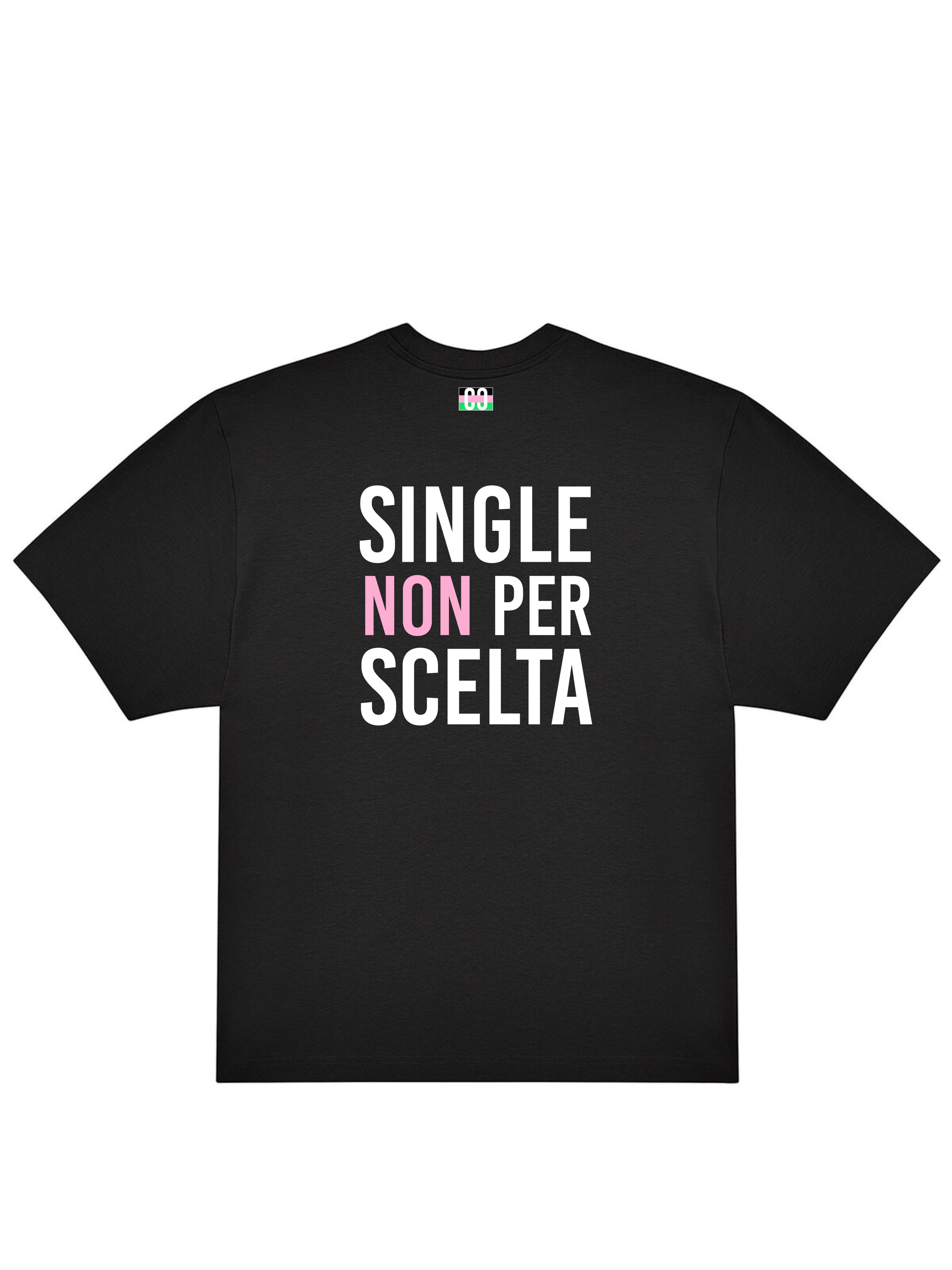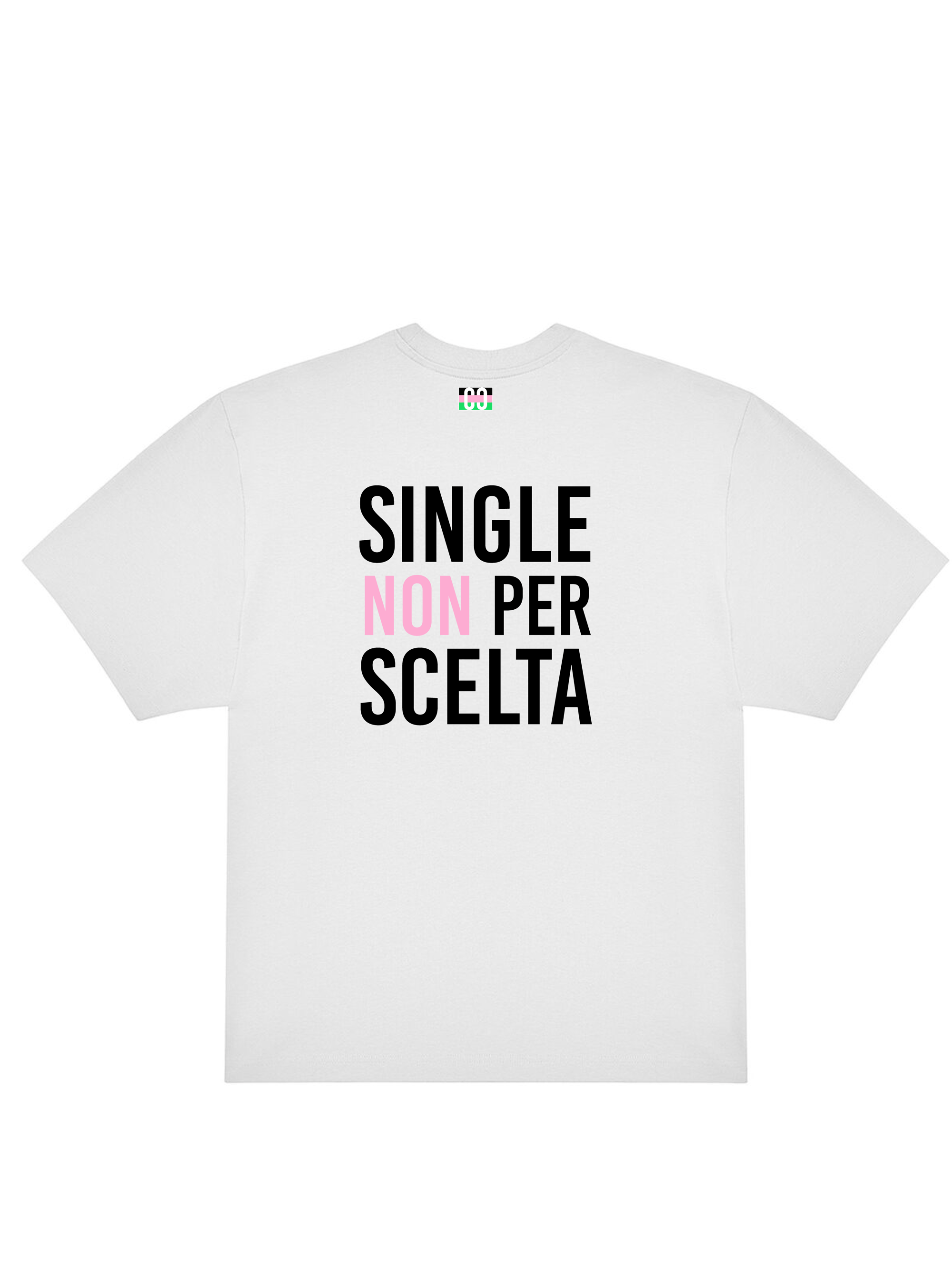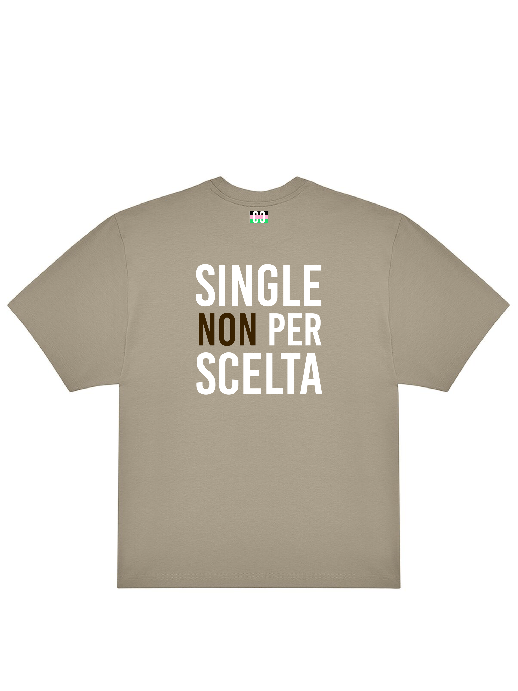 T-shirt 180gr oversize (top quality) con tag CaptainCardoni sul fronte, Bandiera dei Single e Single NON per Scelta sul retro